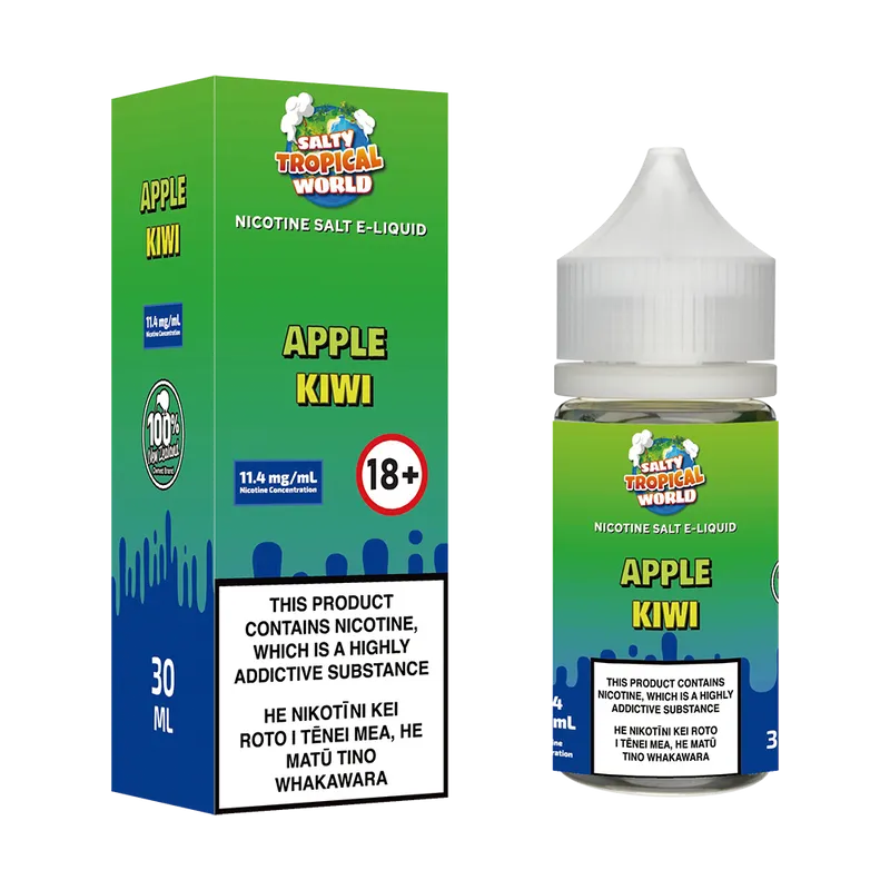 Previously known as Salty Tropical World Green Apple Kiwi Nicotine Salt E-liquid.