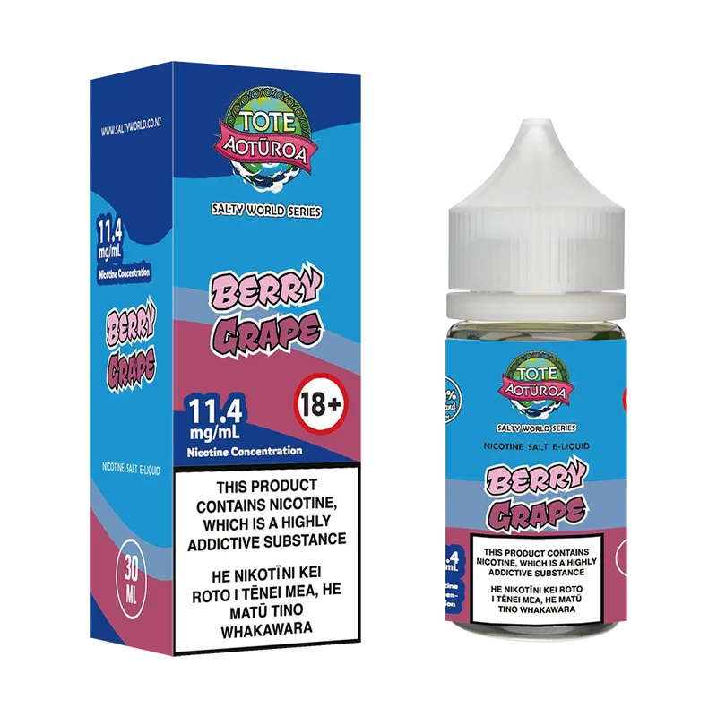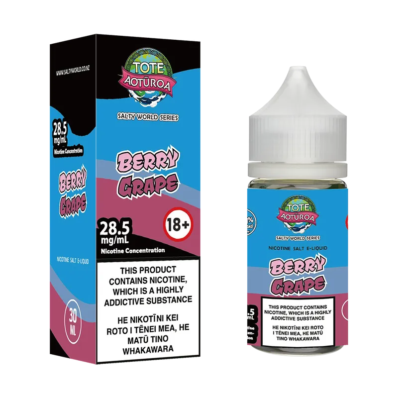 Previously known as Tote Aoturoa Blueberry Raspberry Grape Nicotine Salt E-liquid.