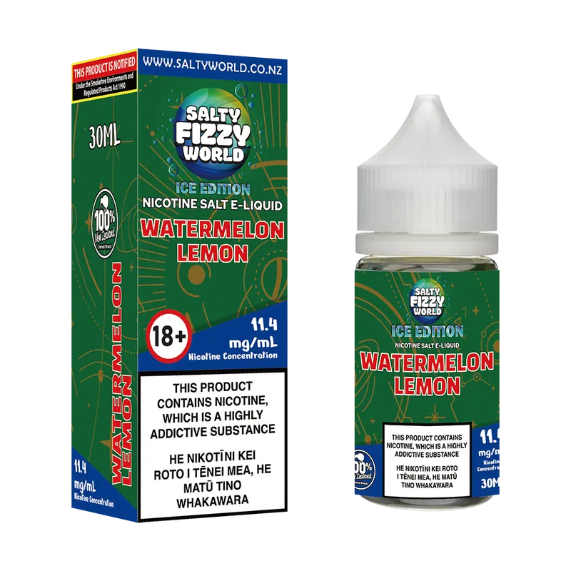 Previously known as Salty Fizzy World Watermelon Melon Iced Lemonade Nicotine Salt E-liquid.